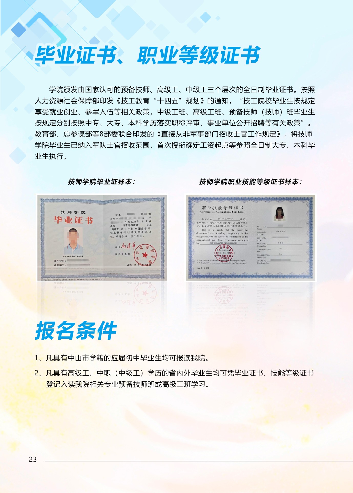 中山市技师学院2024年招生简章