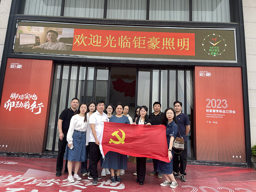 随后,党政办公室支部一行来到位于横栏镇的中国灯饰照明品牌企业——钜豪照明集团,参观了该集团超2万平方米的灯饰展厅,调研了集团产品多元化、管理体制化、销售网络国际化、生产分工专业化的经营和管理模式。