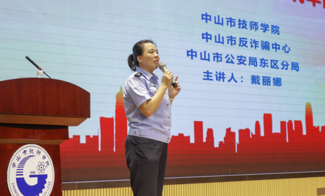 此次活动由中山市禁毒工作协调机制、中山市强制隔离戒毒所、东区街道平安法治办公室、中山市公安局东区分局反诈中心及中国人民银行中山市分行等单位共同指导完成。讲座面向学院电气应用系、机械系多个班级。由中山市强制隔离戒毒所警官周虹、东区公安分局反诈中心警官戴丽娜主讲。
