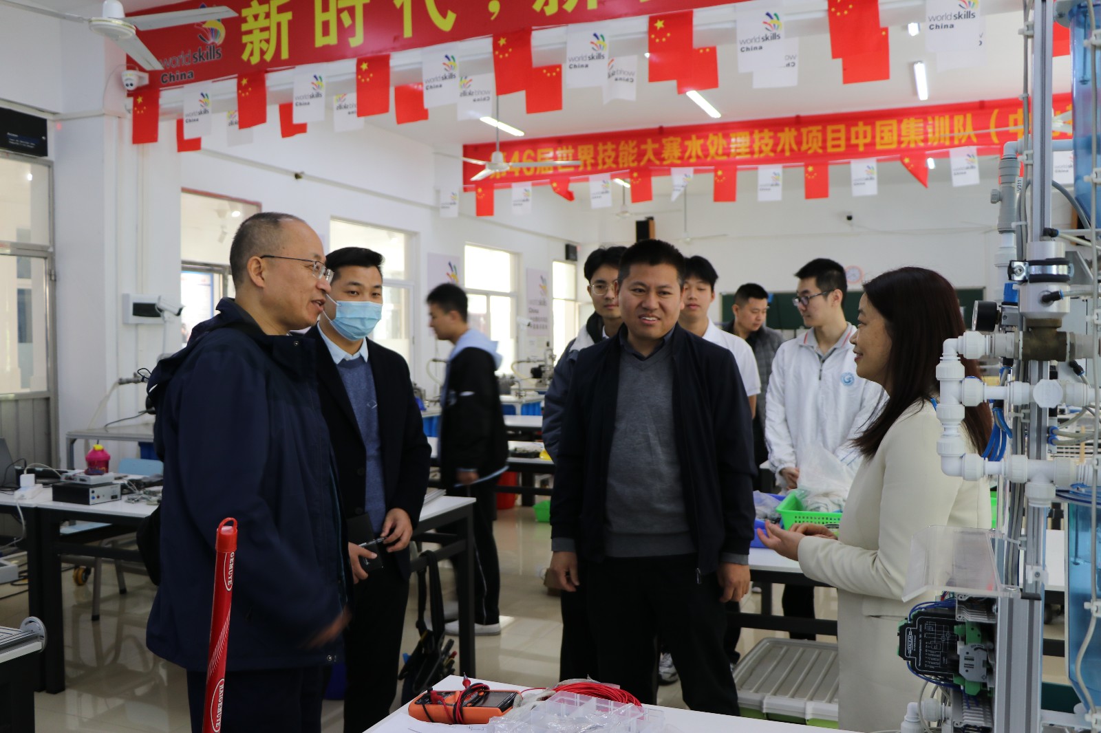 最后,实验中学的领导和老师们参观了我院信息中心机房、学生宿舍、数控技术应用中心、世界技能大赛信息网络布线和水处理项目国家集训基地,实地了解了我院高水平技师学院信息化平台、热水进宿舍工程、世赛项目等重要项目的建设情况。