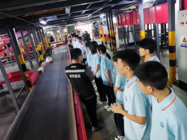参观过程中,工作人员带领同学们依次参观中转场,向同学们详细介绍了中心的运营情况,从快件入库、拆包、分拣、处理、集包、装车等环节,结合不同岗位的职业要求,逐一讲解,同学们聆听得也十分认真。