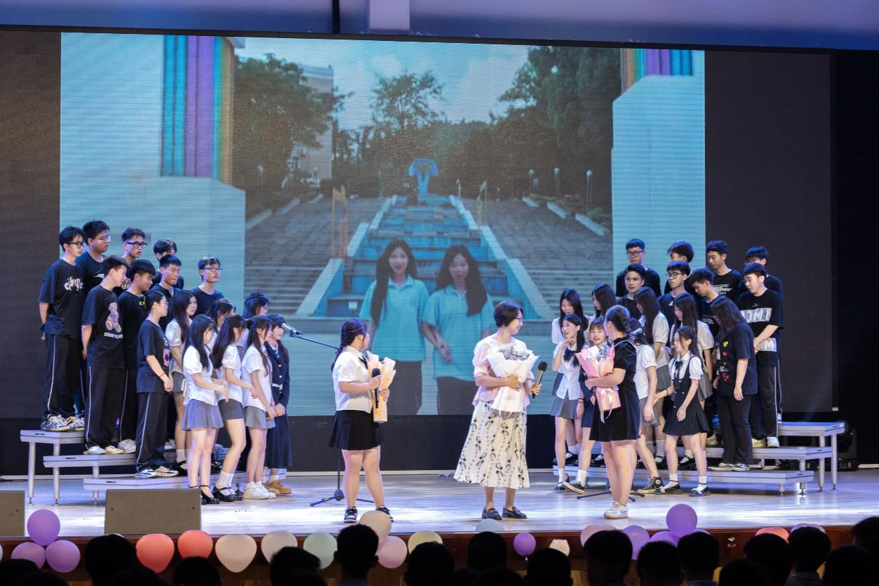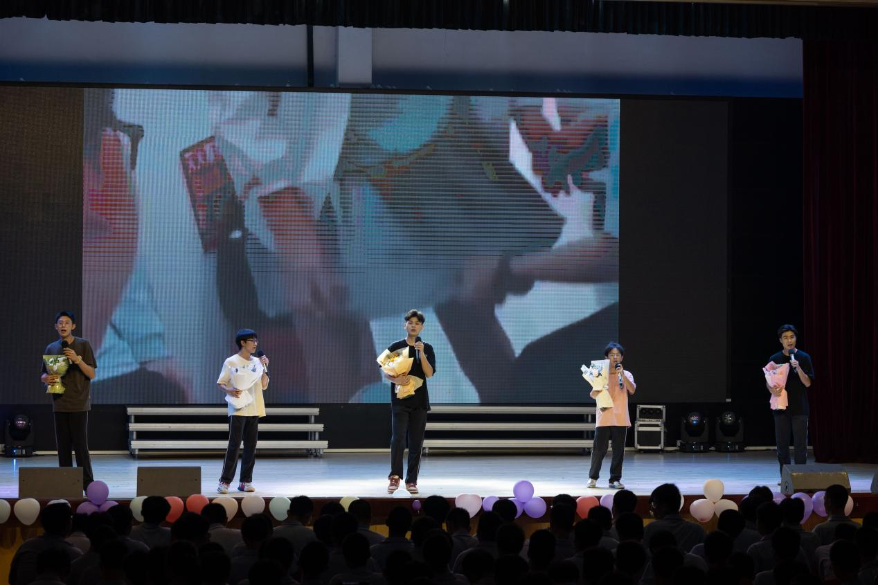 晚会的最后,19级毕业班学生代表来到舞台,献花致谢班主任,感恩母校、老师的培养。班主任们也为同学们送上了深深的毕业祝福。