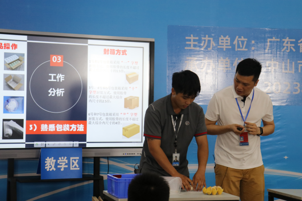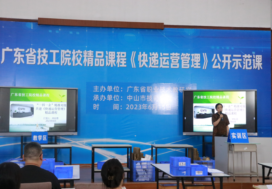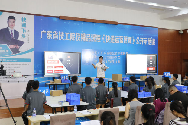 为深入贯彻党的二十大精神和习近平总书记关于技能人才工作重要指示精神,全面提升学院专业建设水平,建设优质教学资源,加强师资队伍建设和提升教师教学能力,根据《关于开展2023年广东省技工院校省级精品课程公开示范课活动的通知(粤职技研〔2023〕57号)》的要求,2023年6月15日,我院现代服务系组织开展了一次省级精品课程公开示范课教研活动,公开课由“广东省技工院校省级精品课程”——《快递运营管理》课程负责人林秋意老师主讲,顺丰速运公司经理冯柱龙、明星快递小哥刘嘉俊辅讲,授课内容为《快件包装-易碎物品包装》。