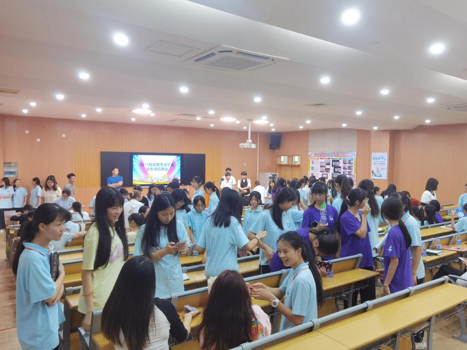 招聘会现场,广州市天河区海贝幼儿园、中山火炬开发区第一幼儿园、中山市古镇镇古一幼儿园、中山市光阳教育集团、中山市特一长江幼儿园、江门市新会区大泽智慧星幼儿园等20多家幼儿园与毕业班的同学们进行了实习就业见面会。会场气氛热烈,通过充分沟通交流,我院幼教专业毕业班的同学们和幼儿园初步达成实习意向。
