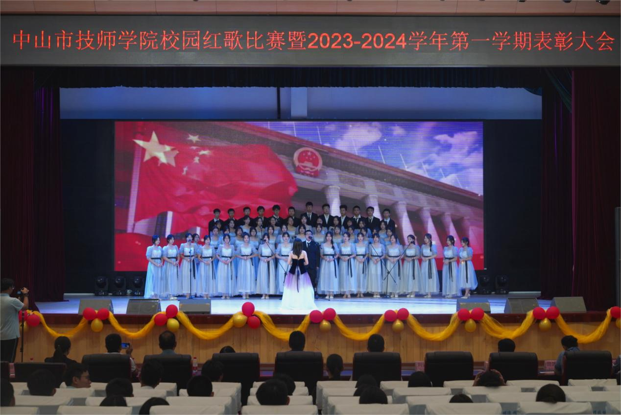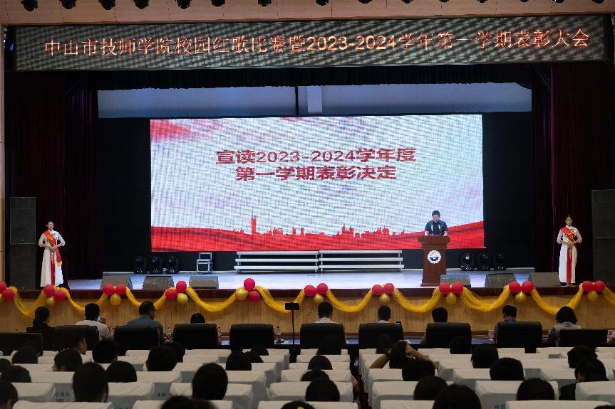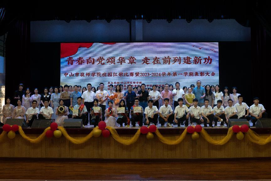 为庆祝中华人民共和国成立74周年、我院建校43周年,引导学生践行社会主义核心价值观,增强爱党爱国爱校意识,表彰优秀,树立典型,激励青年学生勤奋学习,2023年9月27日下午,中山市技师学院2023-2024学年第一学期表彰大会暨校园红歌比赛在我院东校区报告厅、北校区篮球馆隆重举行。学院党委副书记、副院长赵海吉,各处系主任、副主任,院团委相关负责人、受表彰的班集体和个人出席了活动。其他班级通过视频直播方式在课室同步观看。