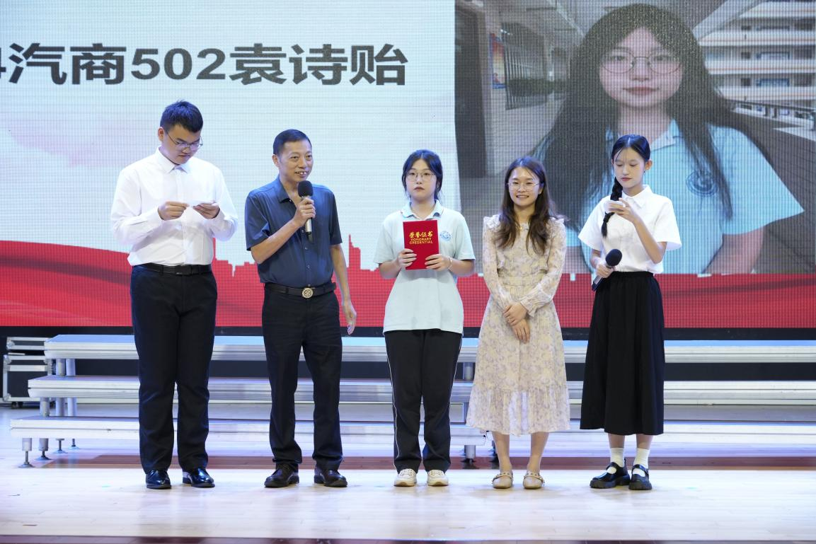 接着,汽车系主任王在田宣读了表彰决定,并对在2022-2023学年第二学期中获得奖学金及荣誉称号的个人和班集体进行了表彰,教务处副主任旋艳静、汽车系教学副主任严家开、汽车系德育副主任杨芳琳等作为颁奖嘉宾,为获奖集体和先进个人代表进行了颁奖。