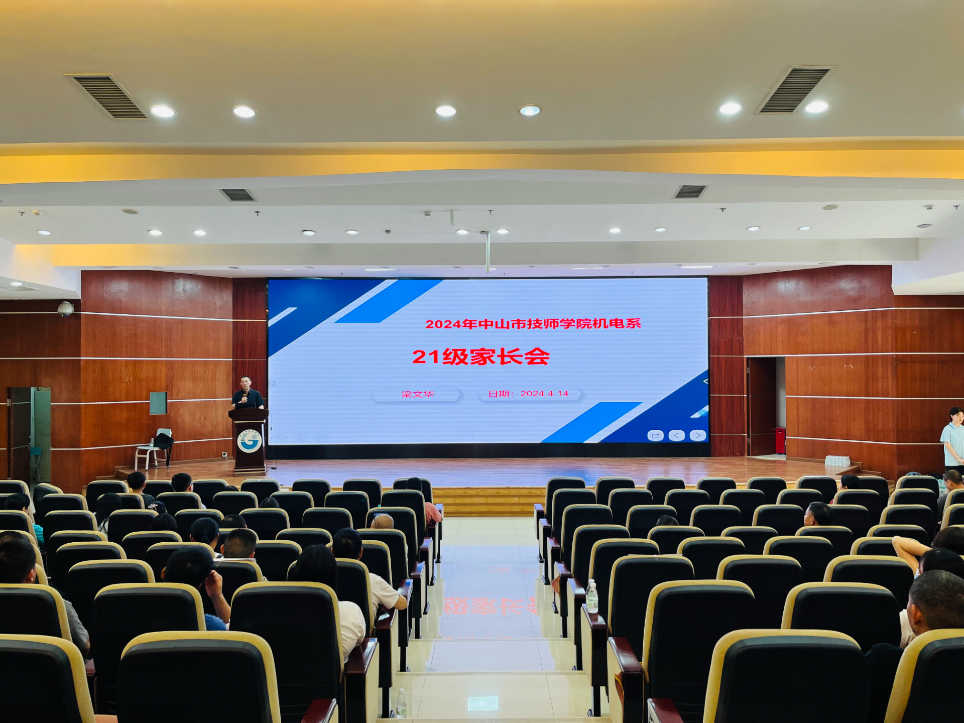 为帮助学生和家长更好地了解目前的就业政策以及就业形势,认识自身优势,加强职业规划,引导学生树立正确的就业观,最大程度地促进家校协同。4月14日,中山市技师学院机电系在北校区报告厅组织召开2021级学生“就业形势与晋升渠道”主题家长会,机电系主任梁文华、2021级班主任,以及学生家长等130人参加了会议。