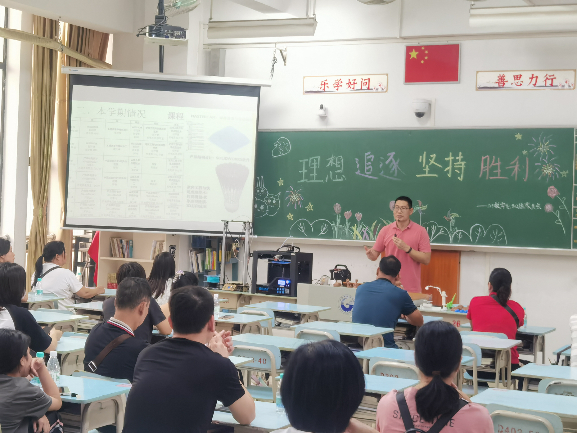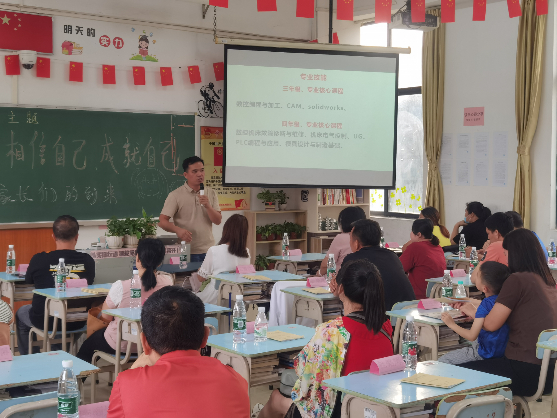 会上,梁文华主任根据我院机电系专业特征及优势,从“什么是技师学院?”“我们的优势在哪里?”“技校生职业规划与就业”“技校生的学历晋升渠道”“企业的需求与反馈”等五个方面向家长进行了重点宣讲与交流,鼓励家长结合孩子实际情况支持学生们选择适合自身发展的职业道路。同时,梁文华主任还介绍了机电系历届优秀毕业生相关事迹,进一步增强了家长们对学生在我院提升技能学习的信心。集中会议结束后,家长们跟随各班班主任回到教室,对学生的学习情况及相关具体问题进行进一步交流。