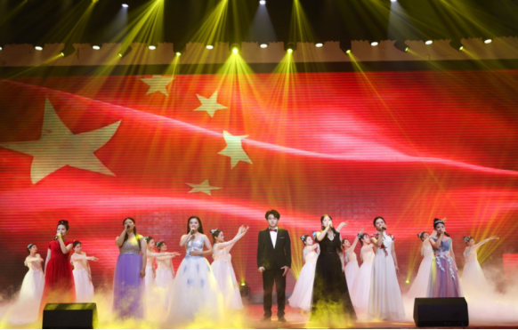 舞蹈《唐宫夜宴》以唐朝盛世为背景,借助唐朝妆容与曲风,在优美的舞姿中将人带入心中的长安,再现盛唐,且歌且吟,赢得阵阵掌声。