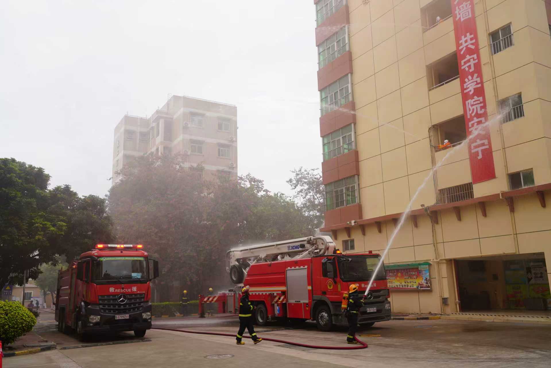 本次演练结合宿舍楼建筑结构及人员分布特点,量身定制应急预案,并对火情报警、初期扑救、疏散路线、救援调度等各环节进行反复推演与优化。演练模拟宿舍楼发生火情,完整呈现从发现火情、初期扑救、应急报警、人员疏散、高空救援、火灾扑灭及全员清点的全过程,有效检验了应急预案的科学性与应急响应机制的有效性。