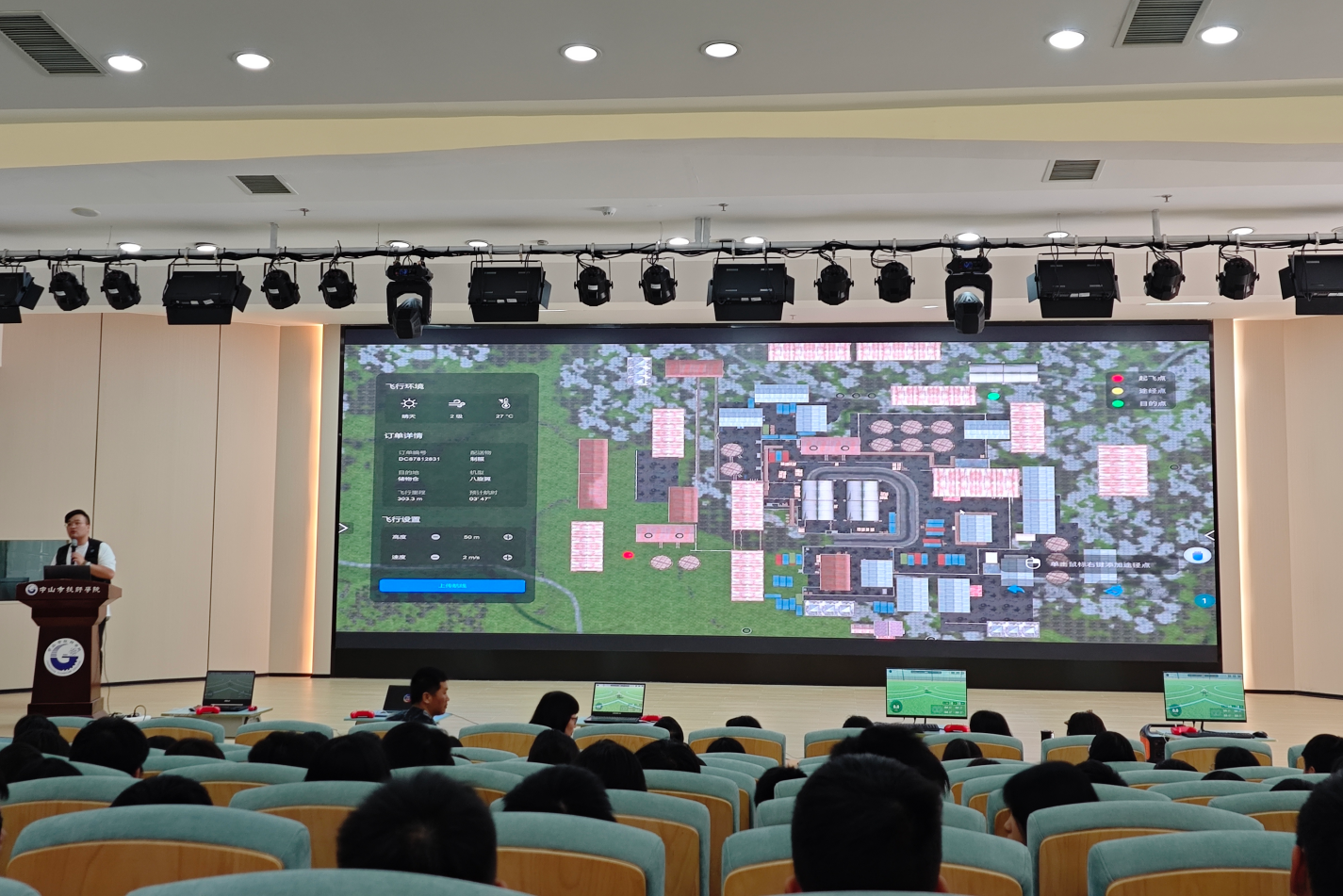 “飞越拥堵,直达终端。” 杨江老师用这八个字精准概括了低空物流的核心优势。他通过详实的行业案例,为师生们描绘了一幅由“干线大型运输机+支线中型无人机+末端小型无人机”构成的三级立体智慧配送网络蓝图。同时,他结合时空鹰低空产业学院在重载无人机商业航线运营及“无人机干线运输+无人车末端投递”全链路无人化作业方面的实践经验,让在场师生对物流行业的智能化转型有了更为直观和深刻的认知。