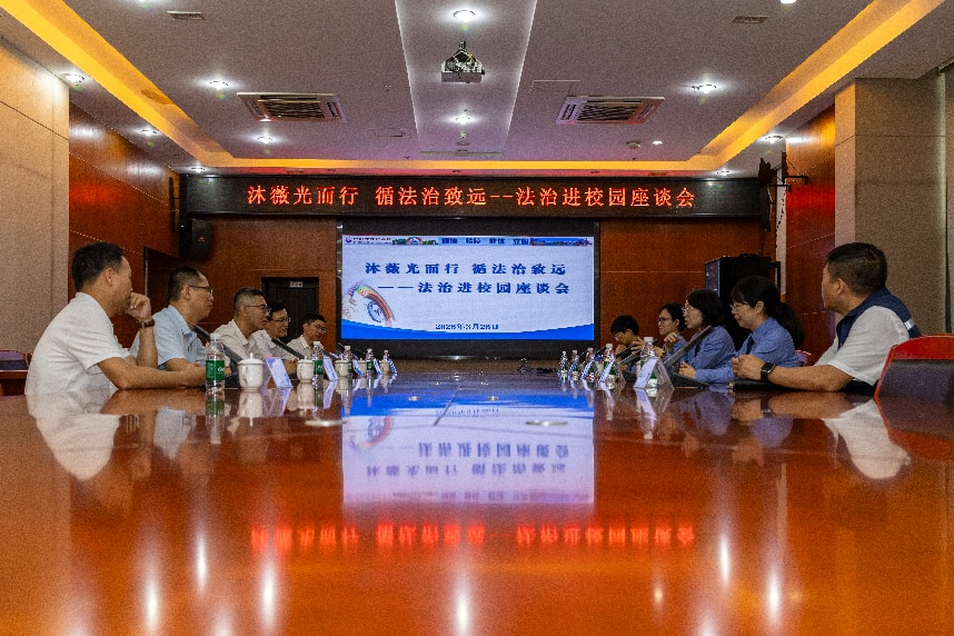 在综合楼一楼会议室,检察院、学院代表召开协同保护座谈会,围绕校园法治教育、未成年人保护、多方联动机制等内容深入交流,共商共建校园安全防护网。