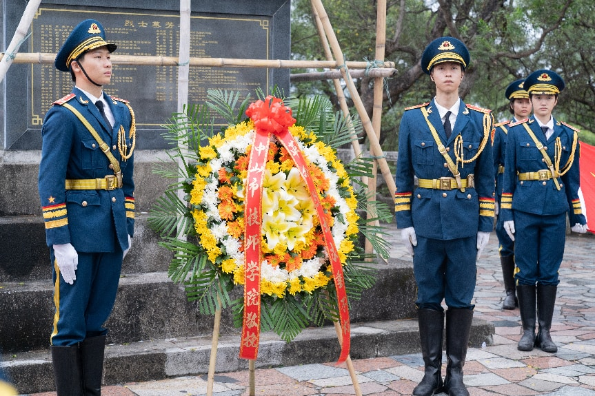 清晨7时30分,全体人员从北校区徒步前往黄圃镇革命烈士纪念碑,以实际行动表达对革命先烈的崇高敬意。抵达陵园后,活动在庄严肃穆的氛围中正式展开。国旗护卫队向革命烈士敬献花圈,全体人员默哀一分钟,深切缅怀为民族独立、人民解放和国家富强英勇献身的革命先烈。