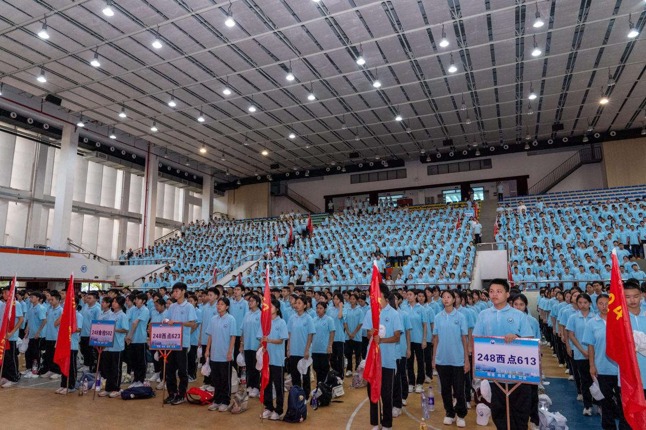 9月1日上午,我院北校区2024级新生军训开营仪式在篮球馆举行。学院党委副书记、副院长赵海吉,党委委员、副院长高民权,党委委员、现代服务系主任温小宁,学生处主任李春香,黄圃武装部相关领导,各教学系主任、副主任出席,1500余名新生参加了开营仪式。