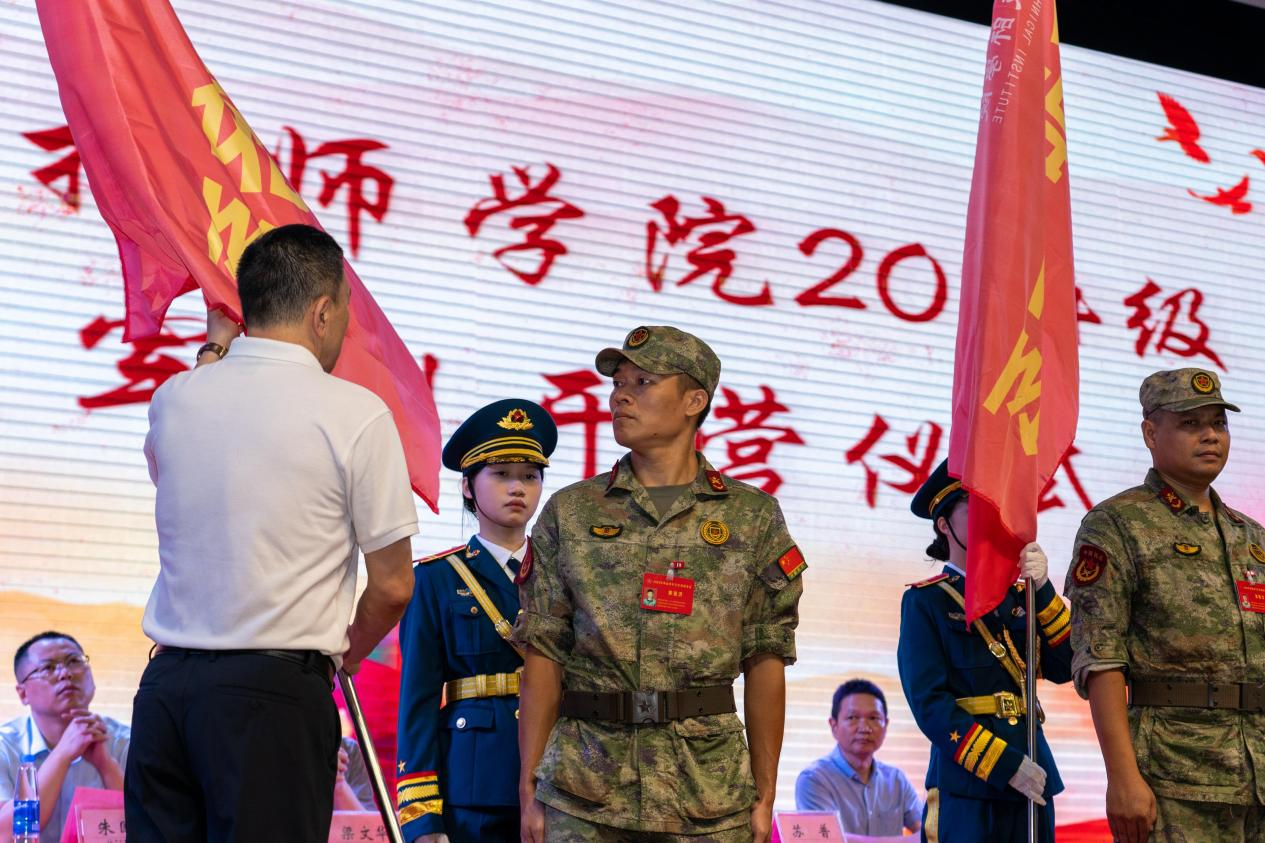 仪式上,教官代表还进行了军姿和队列训练展示。高民权副院长向各五个军训营分别授旗。温小宁委员宣布“中山市技师学院2024级新生军训开训!”,2024级军训正式拉开帷幕。