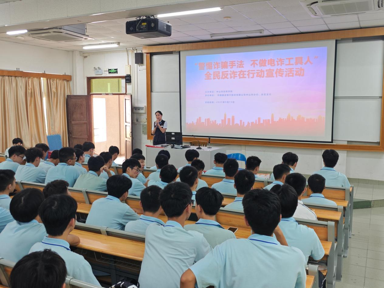 本次活动主要包括法制讲座和现场宣传两个环节。学院法制副校长和中国建设银行股份有限公司东区支行工作人员分别在两校区围绕消防安全、防范电信网络诈骗、禁毒知识等重点内容,为师生带来了一场生动而深刻的专题讲座。他们结合真实案例和校园实际,深入浅出地讲解了相关法律法规及应急技能,引导同学们树立法治观念,增强自我保护意识。在场学生纷纷表示,通过讲座不仅学到了实用的安全知识,更明白了每一个人都应是平安校园的参与者与守护者。