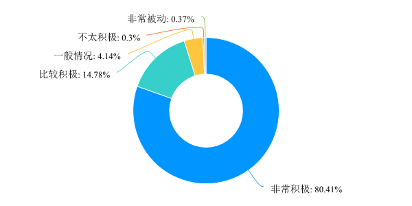 调查结果显示:95.18%的学生在每日填报身体健康状况时,态度是积极的,面对每日重复的健康状况填报,学生依然态度积极,充分体现了我院学生良好的素质,也折射出班主任在督促此项工作中付出大量努力。